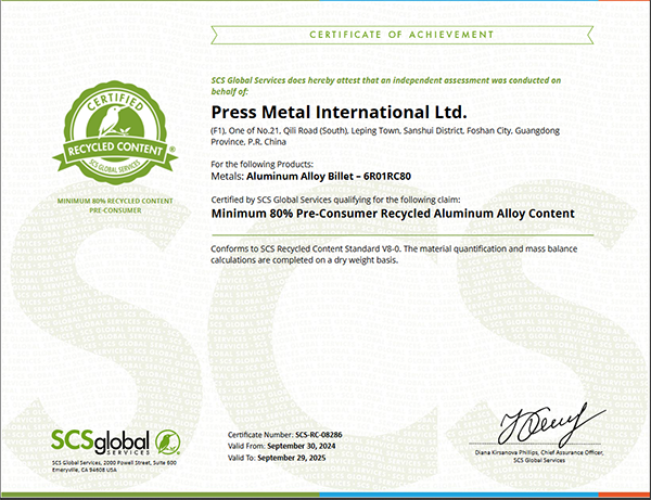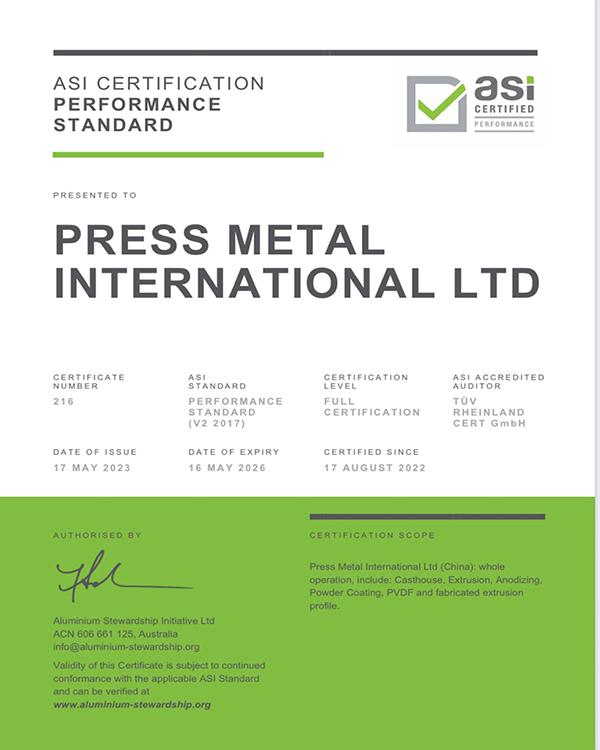 鋁業(yè)管理倡議ASI績(jī)效標(biāo)準(zhǔn)認(rèn)證